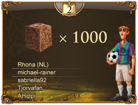 Για μία ακόμη φορά 5 Settlers επιλέχθηκαν τυχαία για την συμμετοχή τους στον Διαγωνισμό Προγνωστικών.Το έπαθλο για την 8η ημέρα αγώνων είναι 1.000 διαμάντια για τα 5 τυχερά μέλη της κοινότητας μας που υπέβαλαν τις προβλέψεις τους για τους αγώνες της Πέμπτης. Συγχαρητήρια!